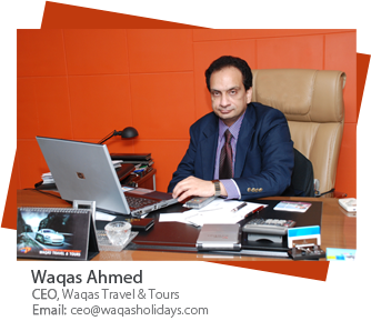 Waqas Travel & Tours was established in 1985 by entrepreneur Waqas Ahmed. Mr Waqas Ahmed also served as Chairman of the Travel agent association’s Pakistan (TAAP) from 2000 to 2001. Its Head office is in Islamabad & a branch office in the twin city of Rawalpindi, Pakistan. It is ranked amongst top 10 Travel companies because of its volume of business..